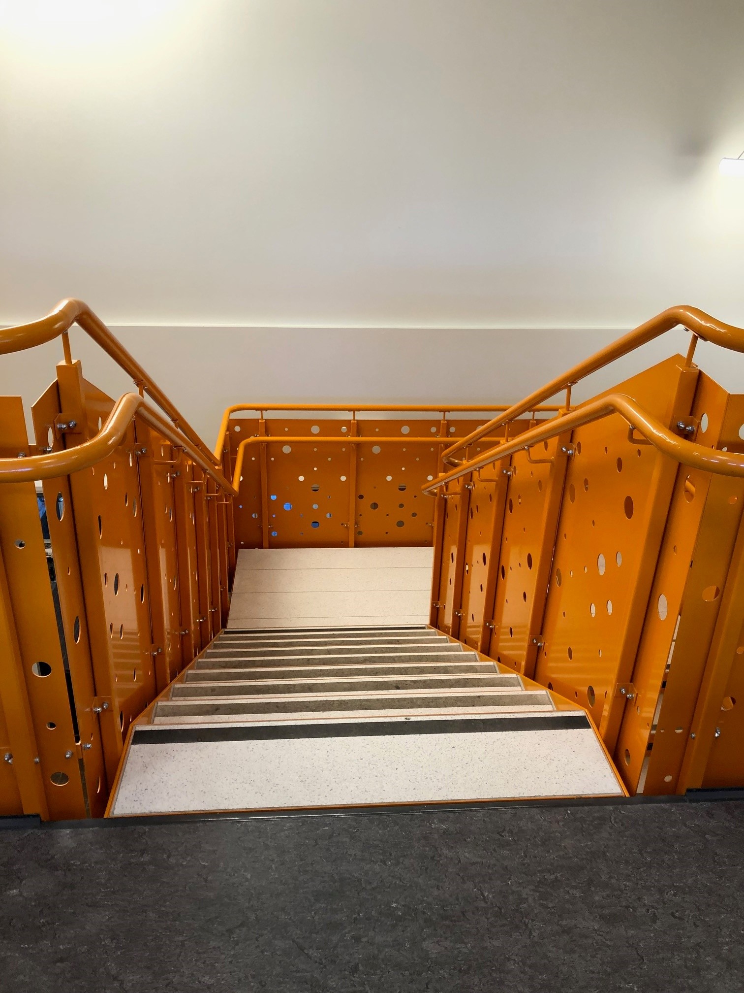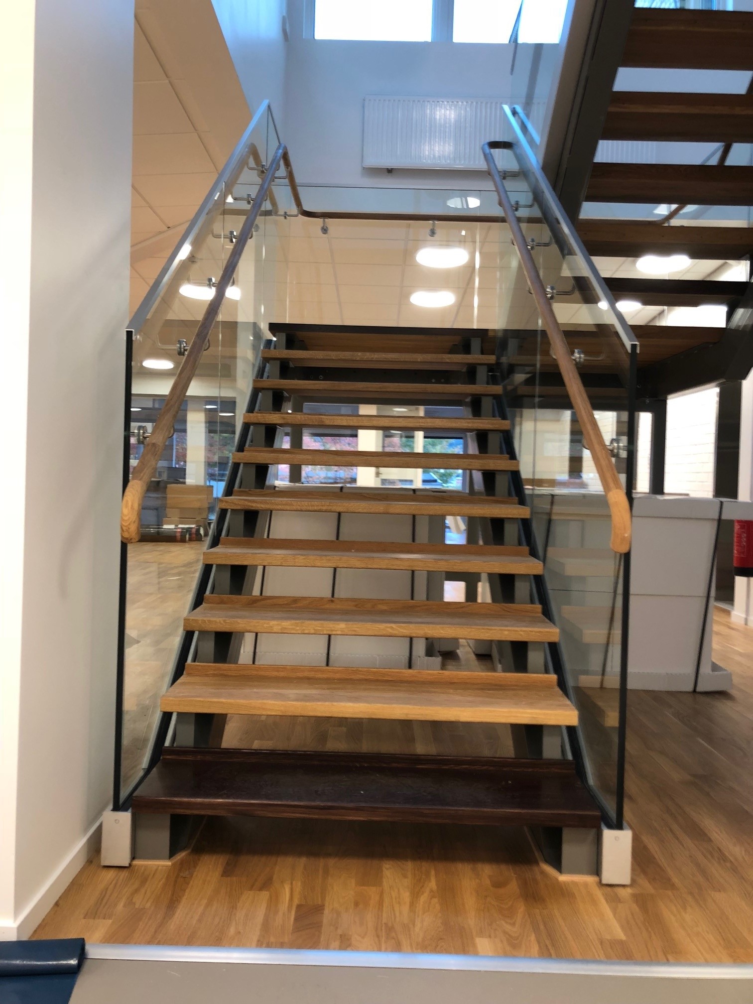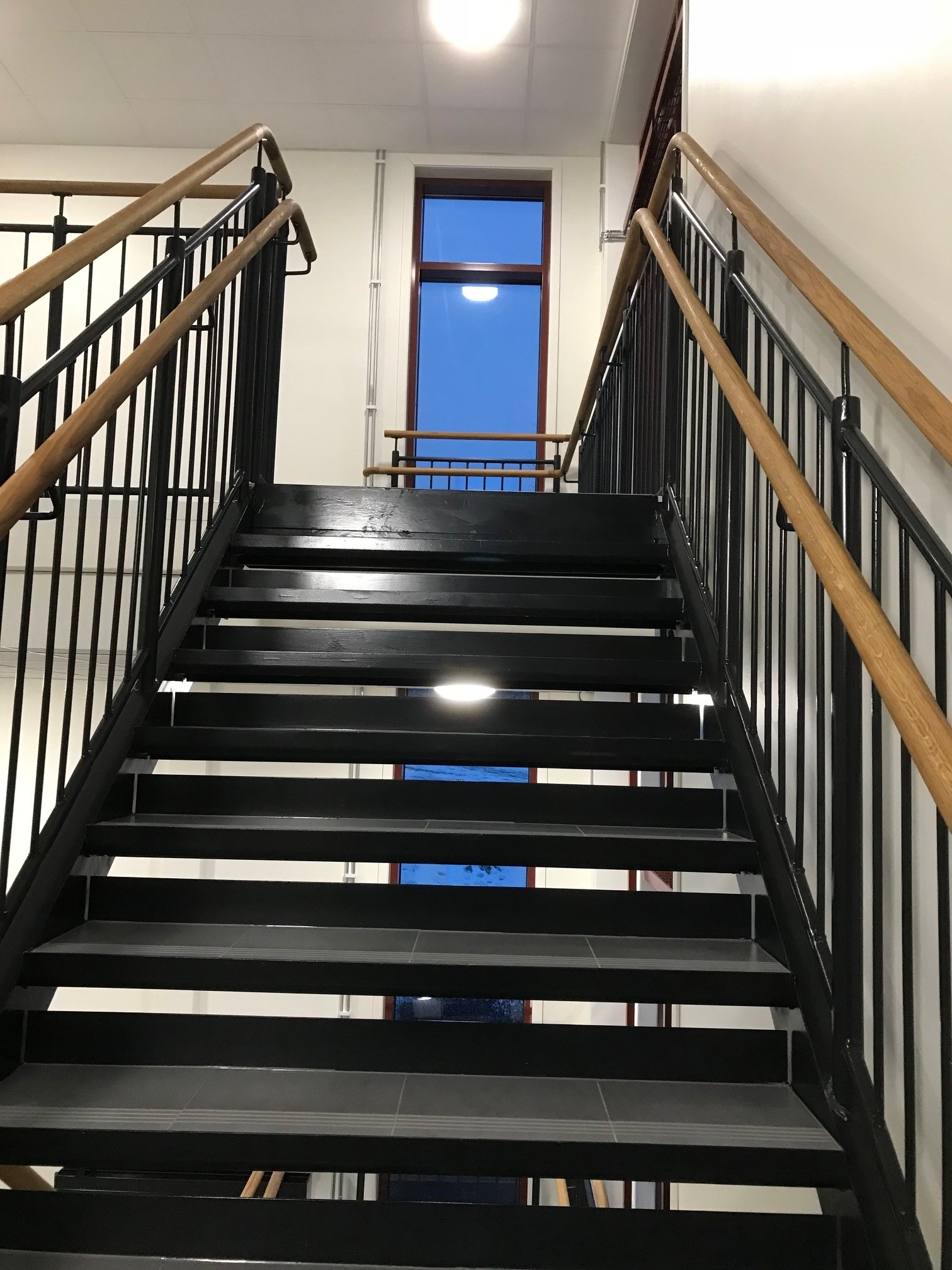 Tack vare flera olika typer av räcke samt olika typer av plansteg och avstigningplans beläggning passar Andersson & Ågrens rak trapp in i båda industri och bostads miljö.