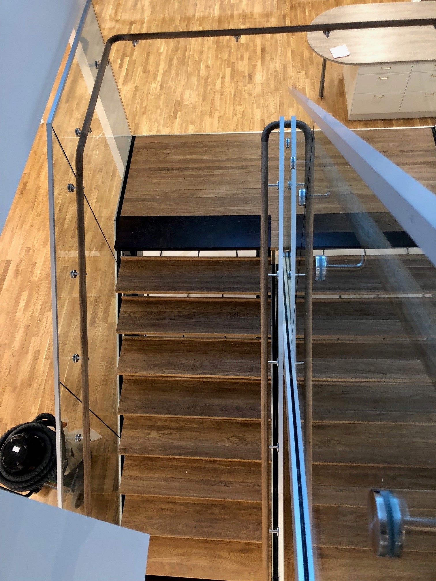Andersson & Ågrens rak trapp består av standard detaljer som skruvas ihop.